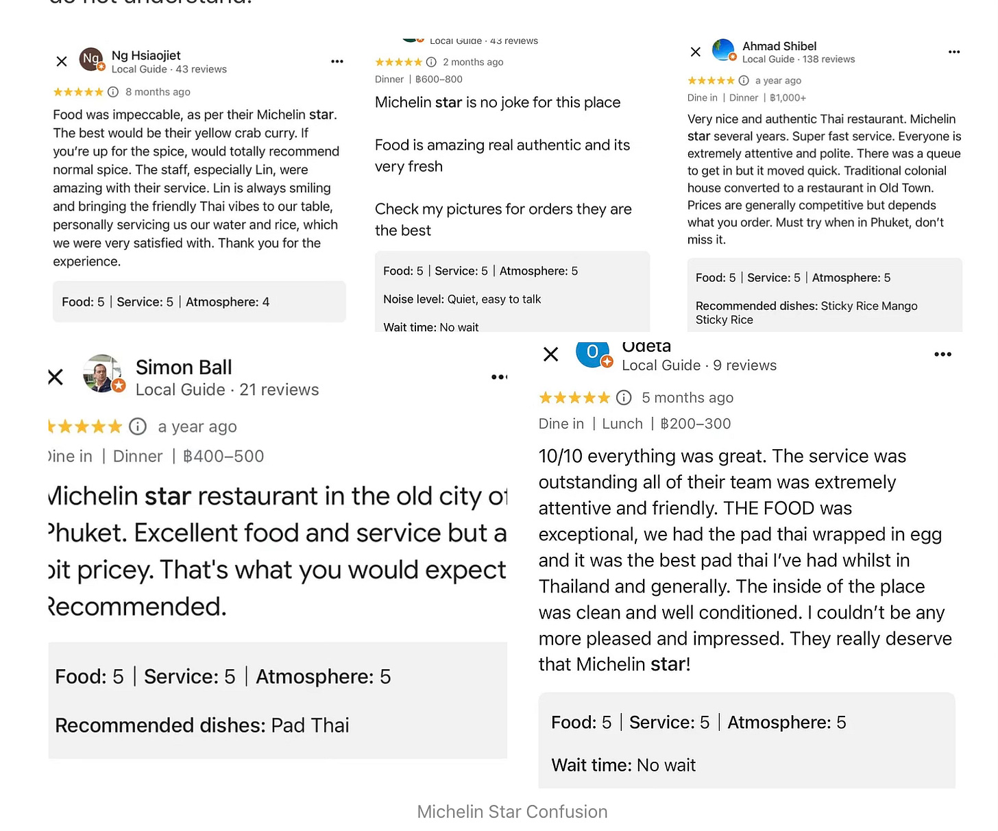 To the public, all of these are simply “Michelin.” To tourists, Google reviewers, and influencers, there is no visible difference between a star, a Bib Gourmand, or a basic recommendation. A red Michelin badge reads as “elite restaurant,” regardless of what was actually awarded.